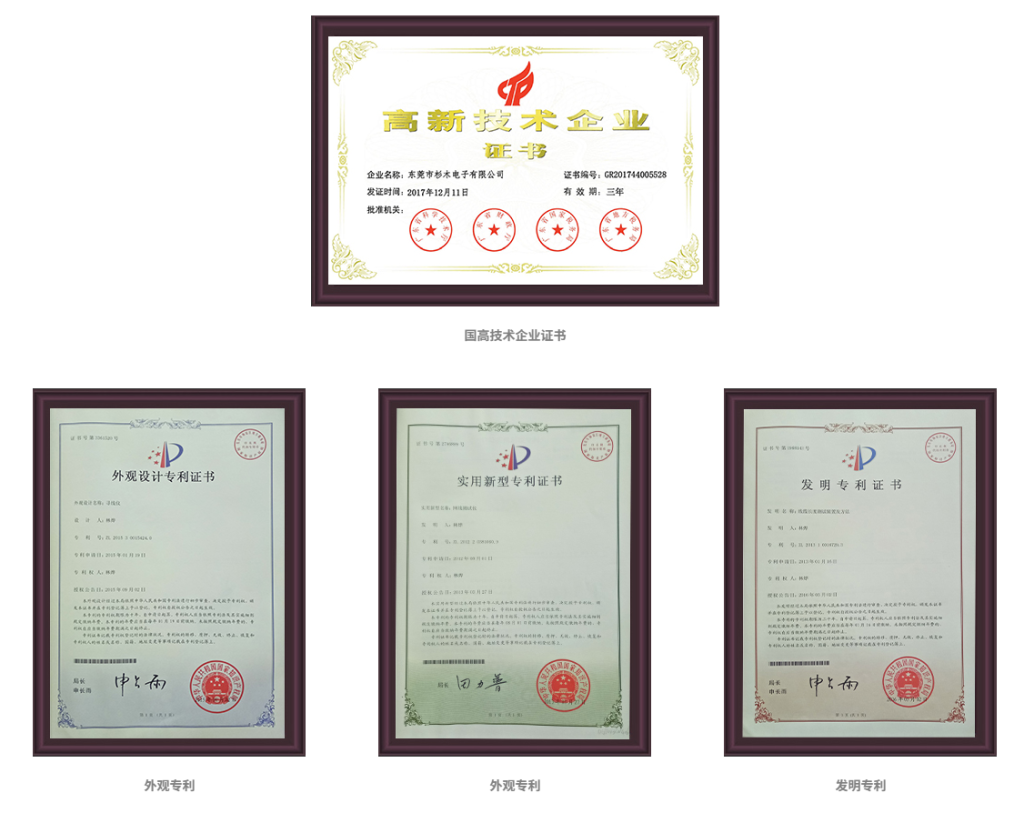 杉木电子,拥有独立的研发团队。研发人员不光走进实验室,也走进市场,走进生产车间。他们既是技术的创造者,也是市场的开拓者、产品的开发者,更是生产的指导者、监督者。正因如此,杉木电子拥有适合实际应用的专利数十项,其中包含多项发明专利。